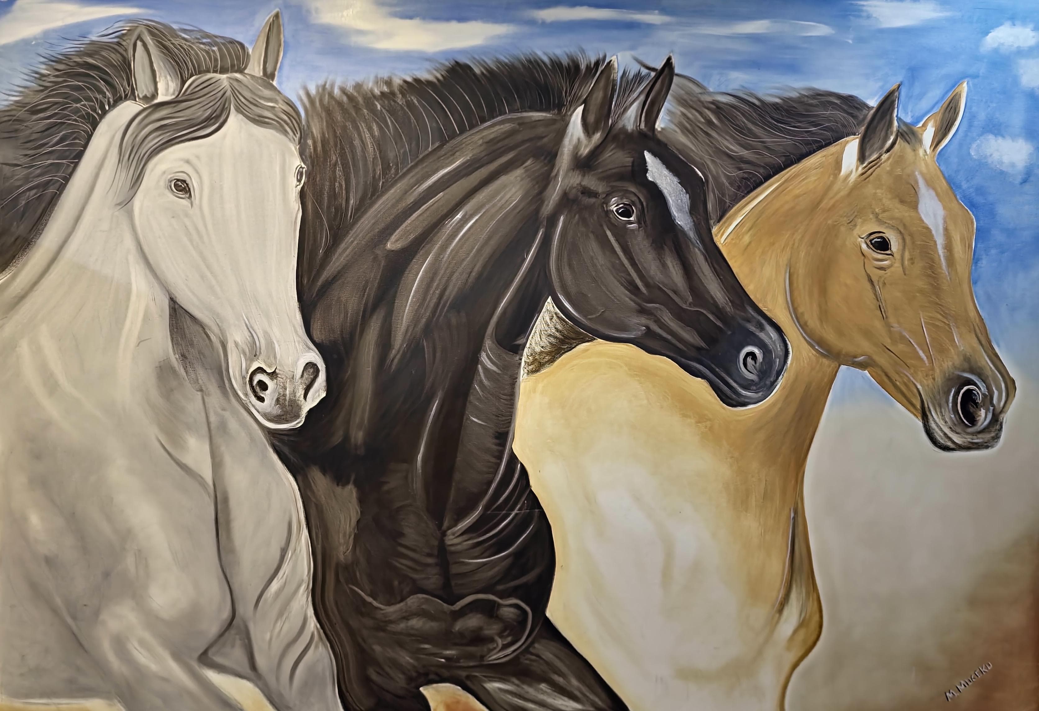 Pikturë origjinale me bojë vaji, 3 kuaj Përmasa: 200 cm × 140 ...