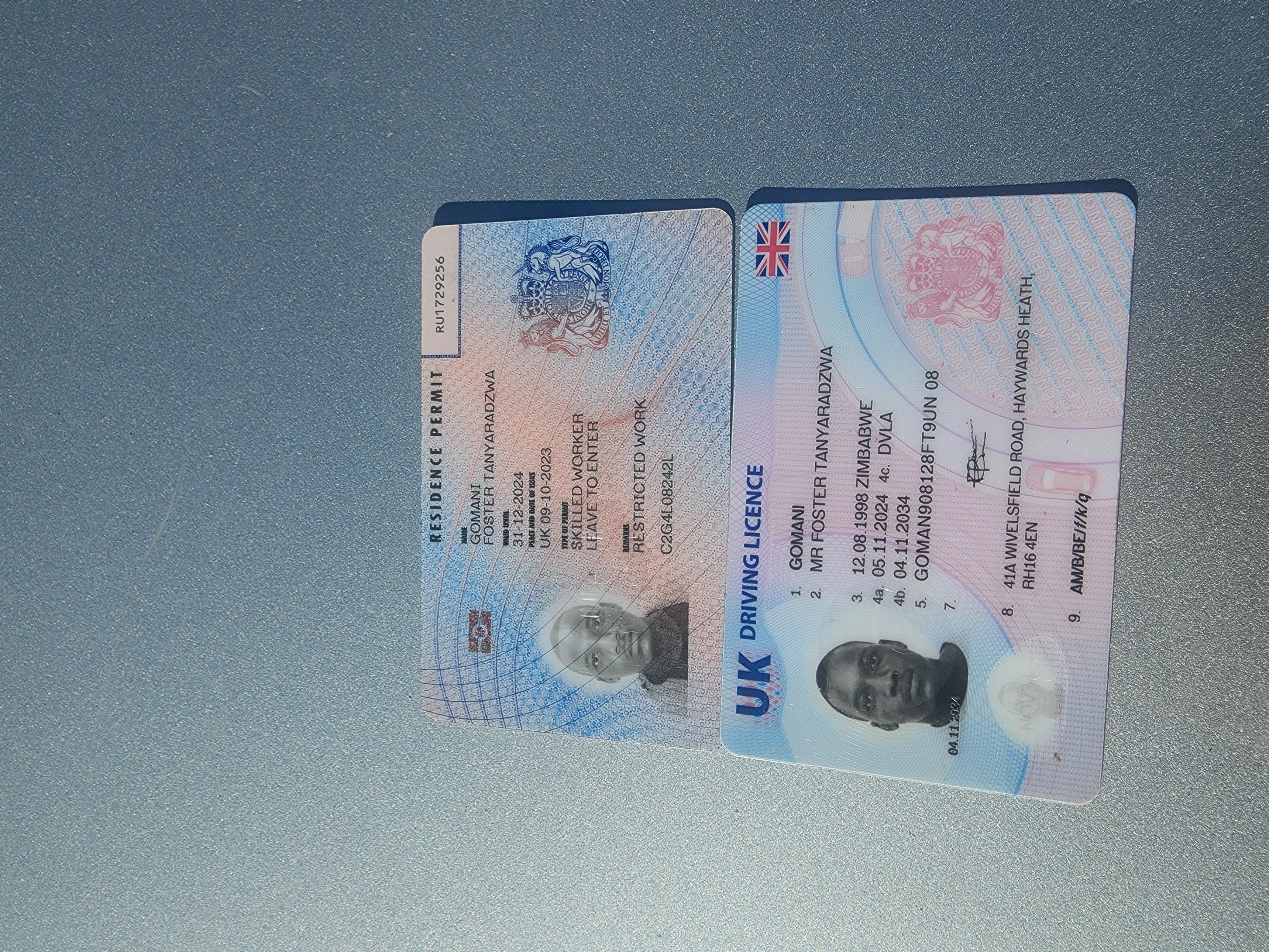 Kuleta ka te gjitha dokumentat e nje shtatasi te huaj me emrin Foster Gomani shtetas UK.