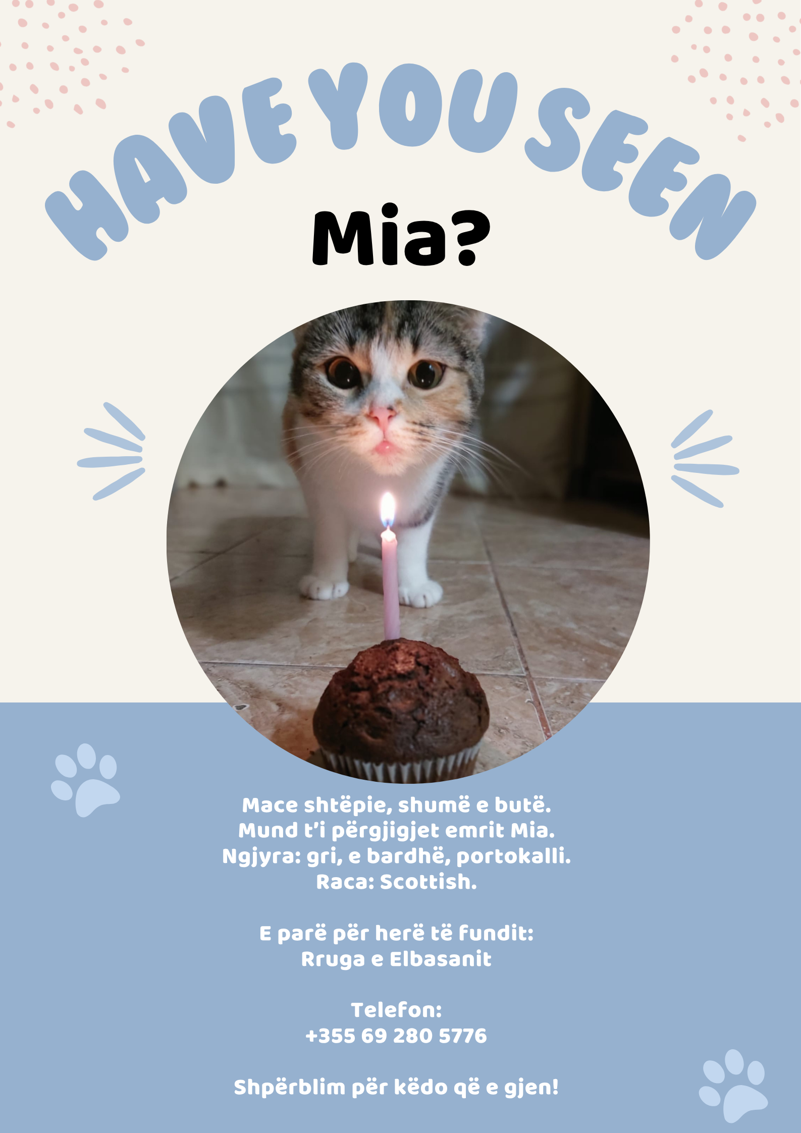 Pershendetje si jeni doja te beja nje raportim ju lutem e kam shum urgjente! me ka humbur nje biciklete elektrike V8 ne zonen e rruges se Dibres prane Rossman ne oren 22:00 dicka e afert ne 21.04.2026 kjo biciklete per tu dalluar ka nje pasqyre te vogel anash ju lutem me ndihmoni pasi eshte i vetmi burim pune per te jetuar qe kemi nr kontakti +355 68 470 1375