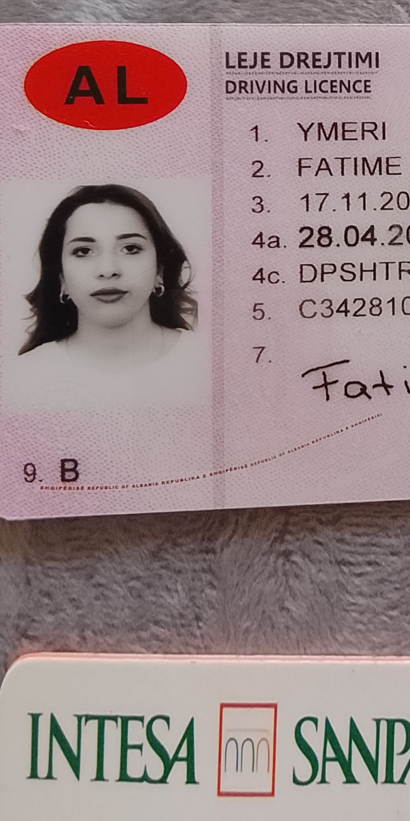 Kam Gjetur nje Leje Drejtimi, Me Emrin YMERI FATIME, Edhe nje Kart Banke INTESA SANPAOLO..Ne Rrugen Qemal Draçini