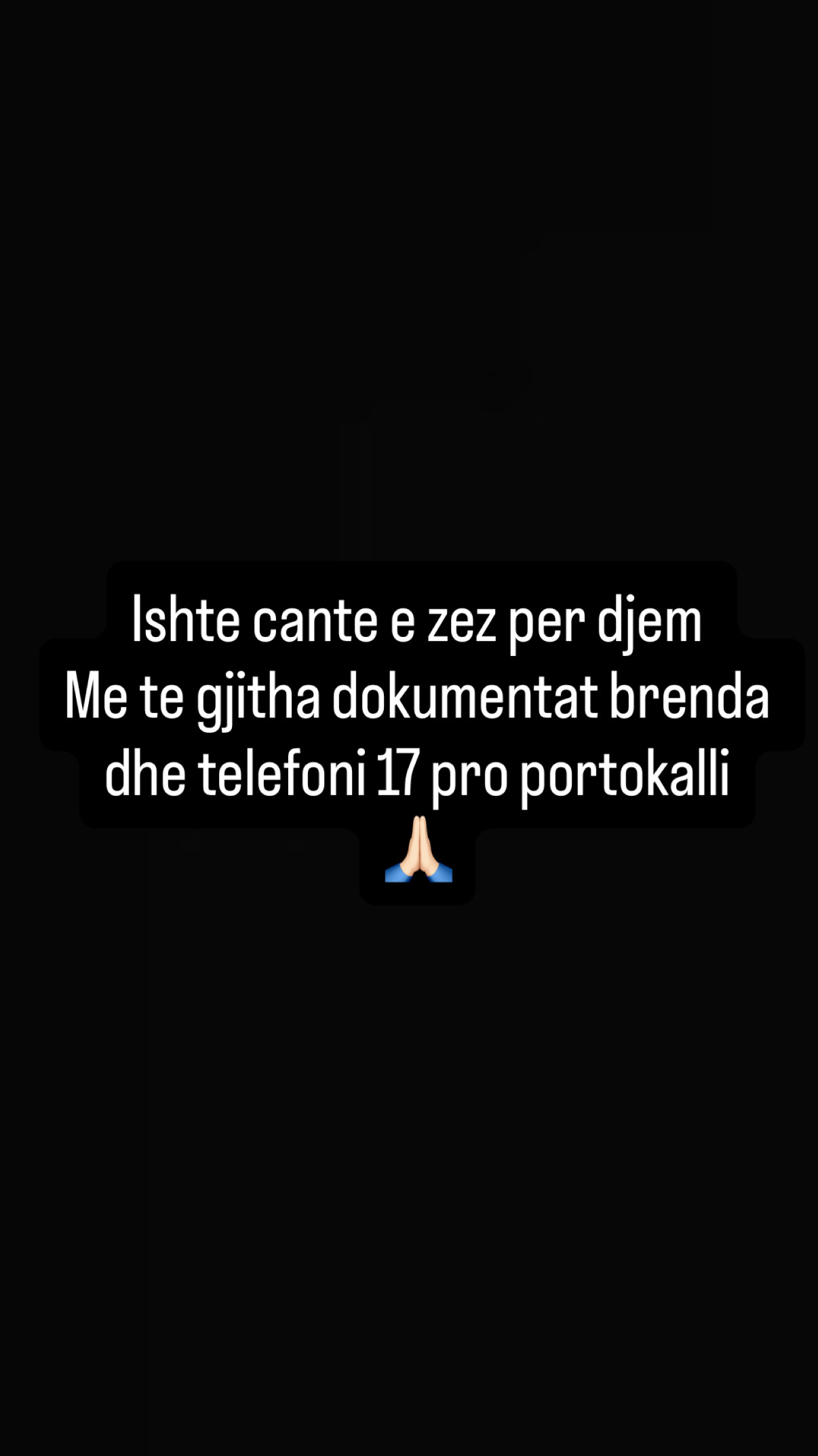 Përshëndetje Para rreth dy ore, më ka humbur çanta në zonën e Freskut,tek rrethi brenda së cilës ndodheshin portofoli me dokumenta dhe telefoni. Çdo gjë që kishte brenda çantës ishte me vlerë për mua, sidomos dokumentat, të cilat i kam bërë së fundmi. Nëse dikush i ka gjetur ose i ka marrë, ju lutem të paktën dokumentat të mi t’i kthejë. Personi që i sjell do të shpêrblehet🙏🏻